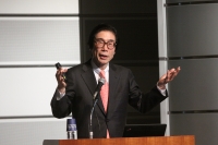 続いて、実際に日本版スチュワードシップ・コード策定に携わられた金融庁の笠原 基和 氏に『コーポレート・ガバナンス向上に向けた取組みについて ~「日本版スチュワードシップ・コード」を中心に~』と題したご講演をいただきました。日本企業の持続的成長とガバナンス向上に向けて、投資家がどのように企業との対話に臨むかを主眼に策定された日本版スチュワードシップ・コードの策定経緯や枠組み、機関投資家の受け入れ状況、そして現在検討が進められているコーポレートガバナンス・コードの概要などについてお話をいただきました。