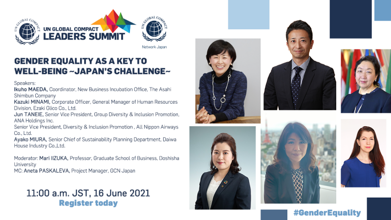 6月15~16日にオンライン開催される国連グローバル・コンパクト2021年リーダーズ・サミットにおいて、GCNJ主催セッション「Gender equality as a key to well-being: Japan’s challenge」が開催されます。