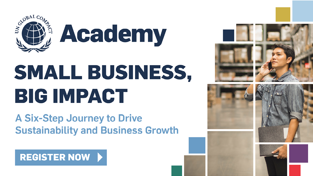国連グローバル・コンパクトでは、この度「中小企業から大きなインパクトを ~サステナビリティとビジネス成長のための6つのステップ」と題した、中小企業向けの新教材(コース)をご用意いたしました。