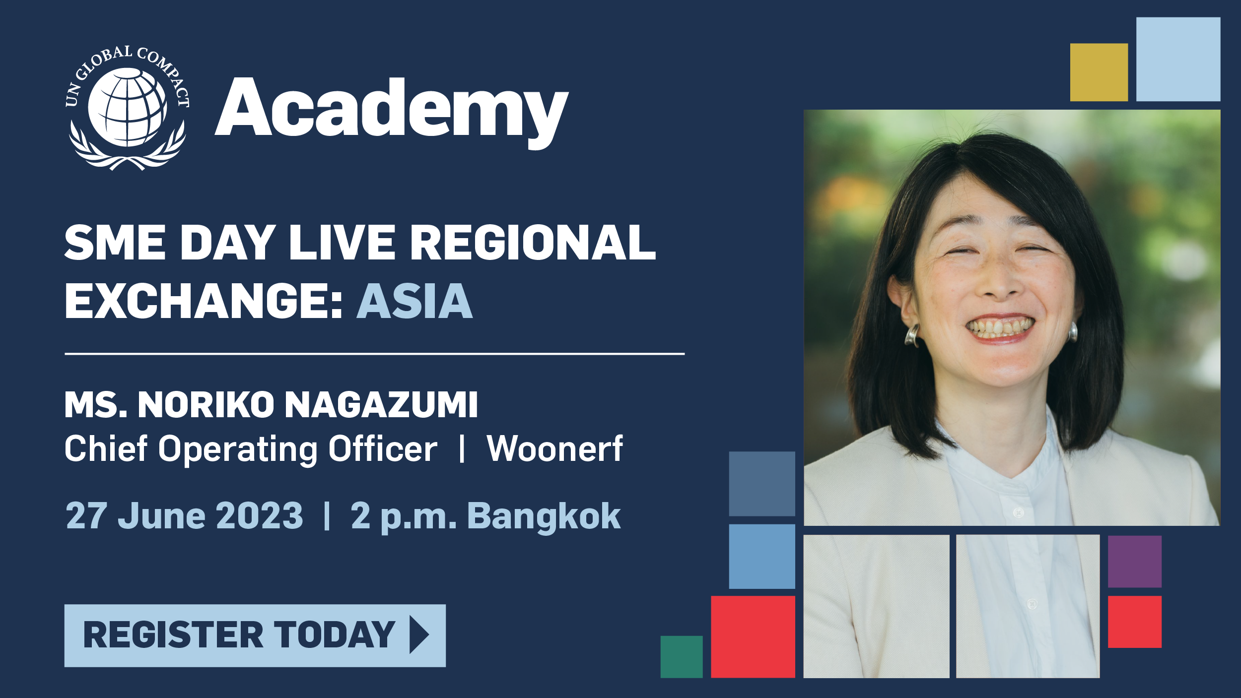 アジア・太平洋地域向けに開催される、このライブ・セッションでは、サステナビリティを事業戦略・運営にいかに取り入れたか、また、そこから得られた教訓を、域内の中小企業から学びます。このセッションに、永積紀子氏(株式会社ヴォンエルフ 取締役 COO)が登壇予定です。