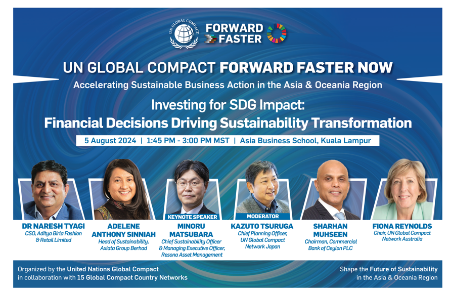 今年度より、国連グローバル・コンパクトは世界の各地域で『Forward Faster Now』と題した地域サミットを開催することとなりました。今年8月に開催されるアジア・オセアニア地域のサミットは、国連グローバル・コンパクトと、15のグローバル・コンパクト・カントリー・ネットワークおよびカントリー・オフィスとの協力の下、開催されます。