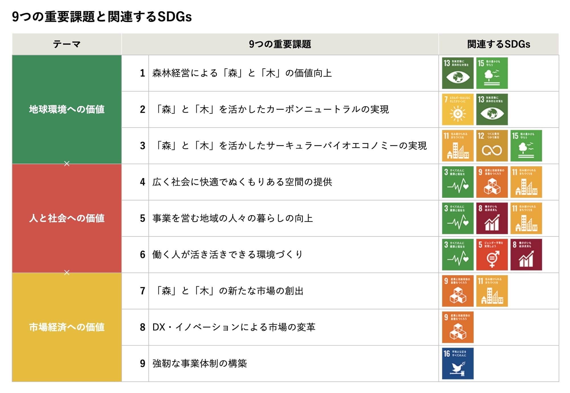 2022年2月、住友林業グループは、SDGsの目標年でもある2030年に向けた長期ビジョン「Mission TREEING 2030」を策定。「地球環境への価値」「人と社会への価値」「市場経済への価値」の3つの価値を同時に満たす事業活動を推進しています。