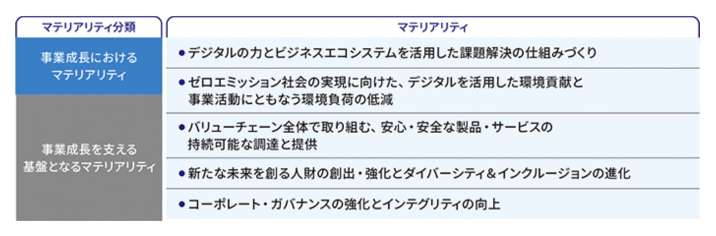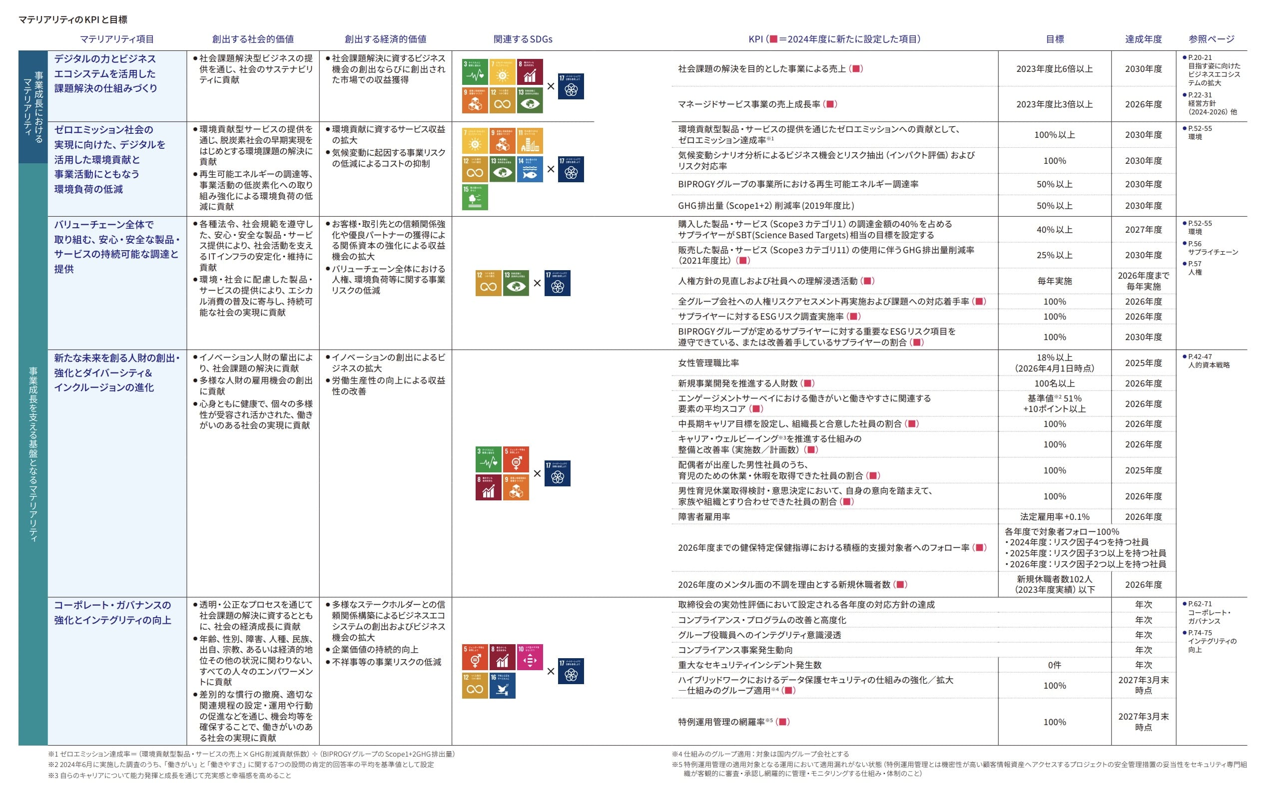 同社グループは、サステナビリティへの取り組みを経営に統合していくために戦略的に取り組むべき重要項目をマテリアリティとして定めており、これに対するKPIと目標値を設定、公開しています。